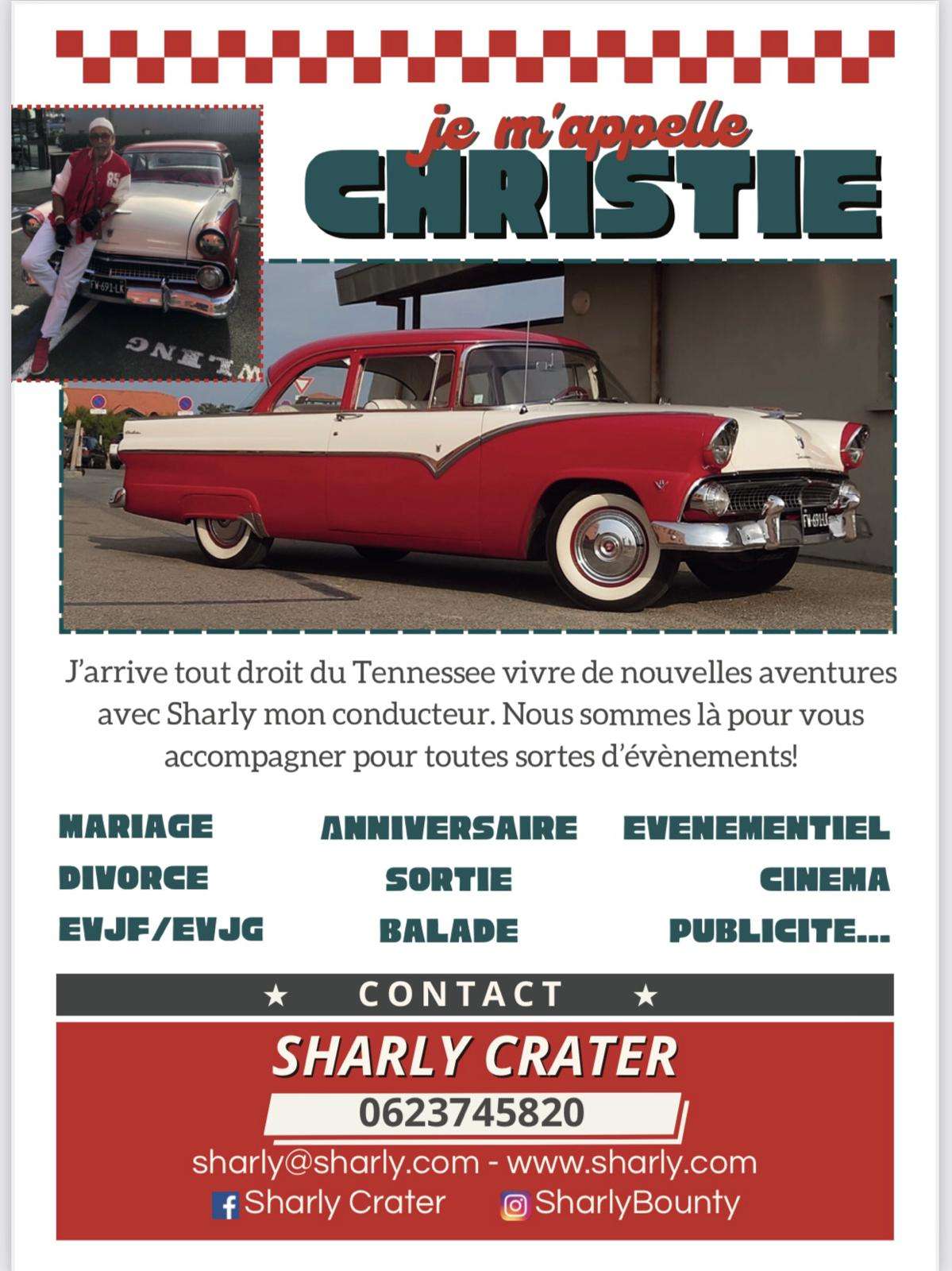 Plongez dans l’élégance rétro avec Sharly, votre chauffeur privé et sa Ford Fairlane 1955. Une expérience de conduite inoubliable vous attend.